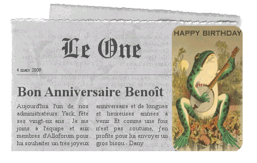 | ohhhhh plus que en retard ................................. bon annif........... mais c est vendredi , alors , c est la fete :::::::::