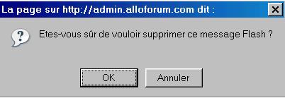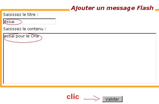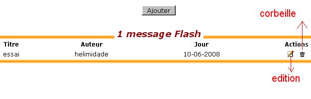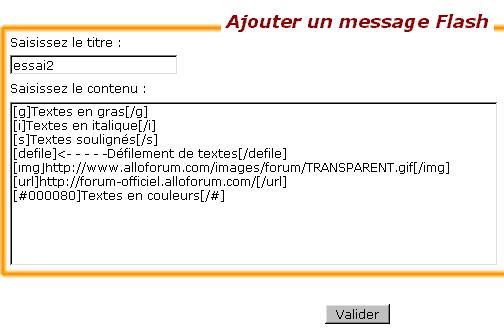 Cliquez sur le bouton " Valider " pour que votre nouveau message flash soit enregistré. vous obtiendrez ceci dans votre administration ( sur le forum voir le deuxième essai )