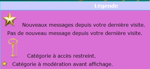 j'ai un souci sur le forum CREAZEN (adresse http://creafolie.alloforum.com/) certaines personnes ne voient plus l'icône deconnexion ainsi que les icones des posts nouveaux messages ou pas, d'autres n'ont plus l'icone répondre ou nouveau message en voulant répondre sur un post, pourtant les icones ont été réébergés sans succès, ils ne tiennent pas |