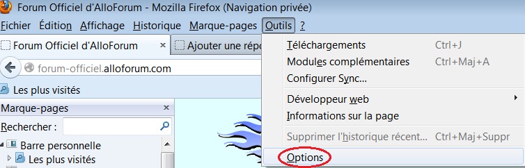 si la fenêtre de réponse au message flash ne s'ouvre pas, c'est que vous n'avez pas autorisé les popup sur votre PC pour cela vous devez appliquer une autorisation "exceptionnelle" en pratiquant ainsi (pour Mozilla, mais pour les autres navigateurs de PC je pense qu'il ne doit pas y avoir beaucoup de différence): Dans votre barre de navigation, cliquer sur "outils"