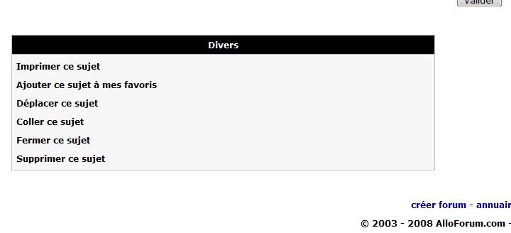 | Bonjour! Je viens de créer un forum il y a 4/5 jours. Tout se passe bien mais je n'arrive pas à avoir les fonctions de modérateur( sachant de je suis administratrice ), je peux juste éditer mais je n'ai pas les fonctions supprimer, déplacer sujet ect ect. J'ai lu les autres sujets et mon problème ressemble un peu à celui là: https://forum-officiel.alloforum.com/administrateur-moderateur-t413697-1.html J'ai fais les tests conseiller par Yack, à la création d'une nouvelle catégorie, j'apparais automatiquement modérateur mais je n'ai pas les fonctions à part editer... Je crois que cela le fais aussi à ma modératrice, je lui demanderais confirmation . Voici l'adresse de mon forum: http://copineetcie.alloforum.com/ Merci d'avance!