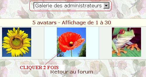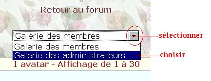 choisissez la galerie des administrateurs (la galerie des membres contient les avatars déjà utilisés) si l'administrateur du forum a créé une galerie d'avatars, vous aurez un choix d'images :
